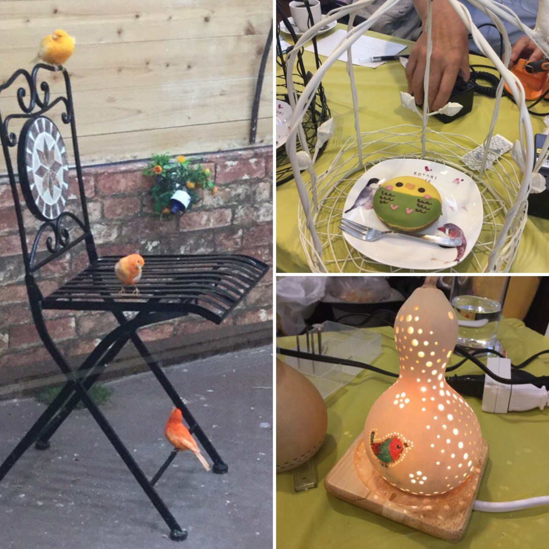 作業の後は特製ドーナツとお茶でひと息。鳥かごに入ったドーナツは洒落ていて、表面にチョコのコーティングがしてありボリューム満点。講師の先生との話も弾み、とても素敵な一日を過ごしました。また参加したいと思います。