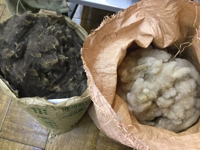 こちらは牧場の原毛。是非使ってみていただきたいので、袋の詰め放題を予定しています。洗い済みの原毛(白のみ)は50gのパックになっています。