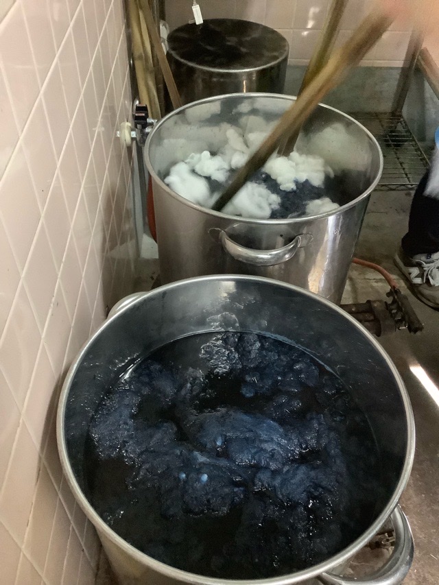 染めは青色のリクエストがあったので、手軽に染められるクチナシブルー液を使用。濃くは見えるものの、洗うと落ちます。作業をしていても手には色が付いてしまい、青色の染色は結構やっかいです。