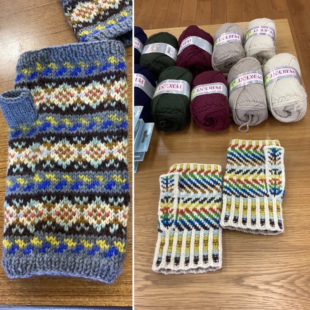 今回の課題は、右のジグザグ模様の手袋。左は前回の課題のフェアアイル模様。もちろん期間中は片方しか編めませんが、小さい分手間がかかります。